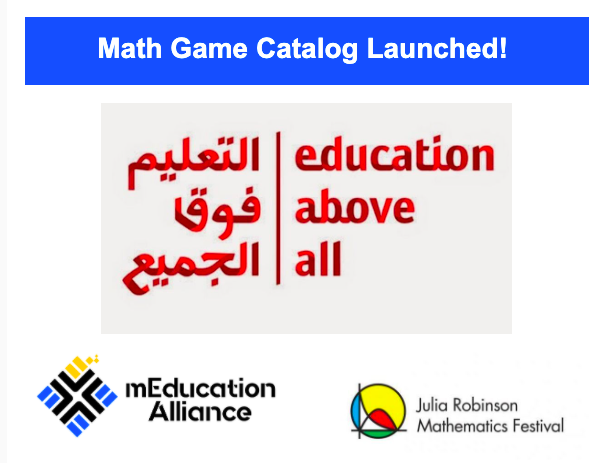 - Development of Math Game Catalogs– A prior collaboration with Education Above All. (See below for more information.)