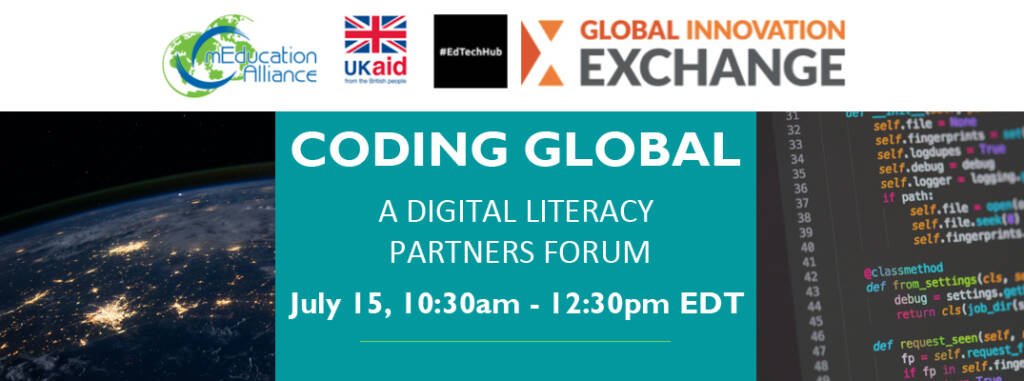 Summary: Coding Global: A Digital Literacy Partners Forum was the second event of the mEducation Alliance 2020 virtual Symposia series on Play and Technology for Lifelong Learning and held on July 15, 2020. This event featured organizations working on education technology interventions that teach coding and computational thinking, particularly in low-resource settings.