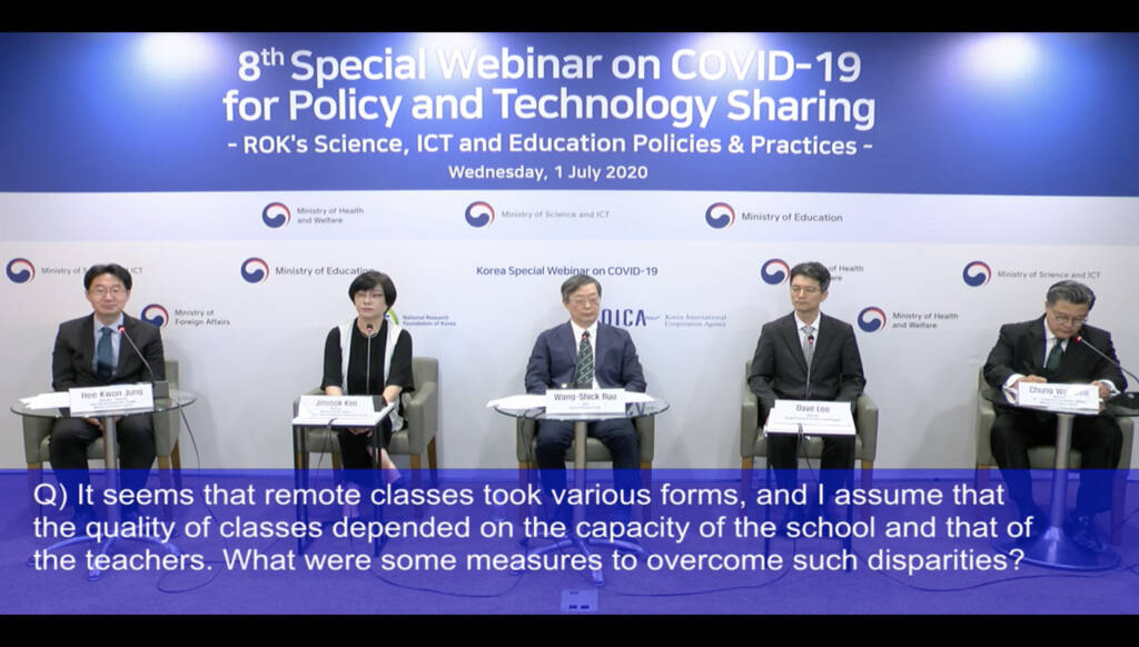 Summary: The discussion took place as part of the “8th Special Webinar on COVID-19 for Policy and Technology Sharing” held on 1 July, 2020. Hosted by the Ministry of Science and ICT and organized by Korea International Cooperation Agency (KOICA) and National Research Foundation of Korea (NRF), the webinar focused on the theme of “Korea’s Science, ICT and Education Policies & Practices.” In this context, KERIS participated on behalf of the education sector, sharing Korea’s online experiences of the last 4 months.